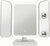 - Tri-Fold Design: Easy for take away and daily maintece, can open or fold it like a book when not using to protect it away from the dust or other scratches. Great ideal as a desk makeup mirror or portable travel makeup mirror with stand. The base recess can storage Jewelery cosmetics, watch, earrings and bracelets.