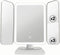 - RECHARGEABLE & INTERNAL BATTERY: The Tri-fold makeup mirror has a built-in high-performance 1200mAh rechargeable lithium battery that lasts for 4-6 hours on a full charge. Universal Type-C charging port, even if we lose the included USB power cable the countertop cosmetic mirror can continue to be used !